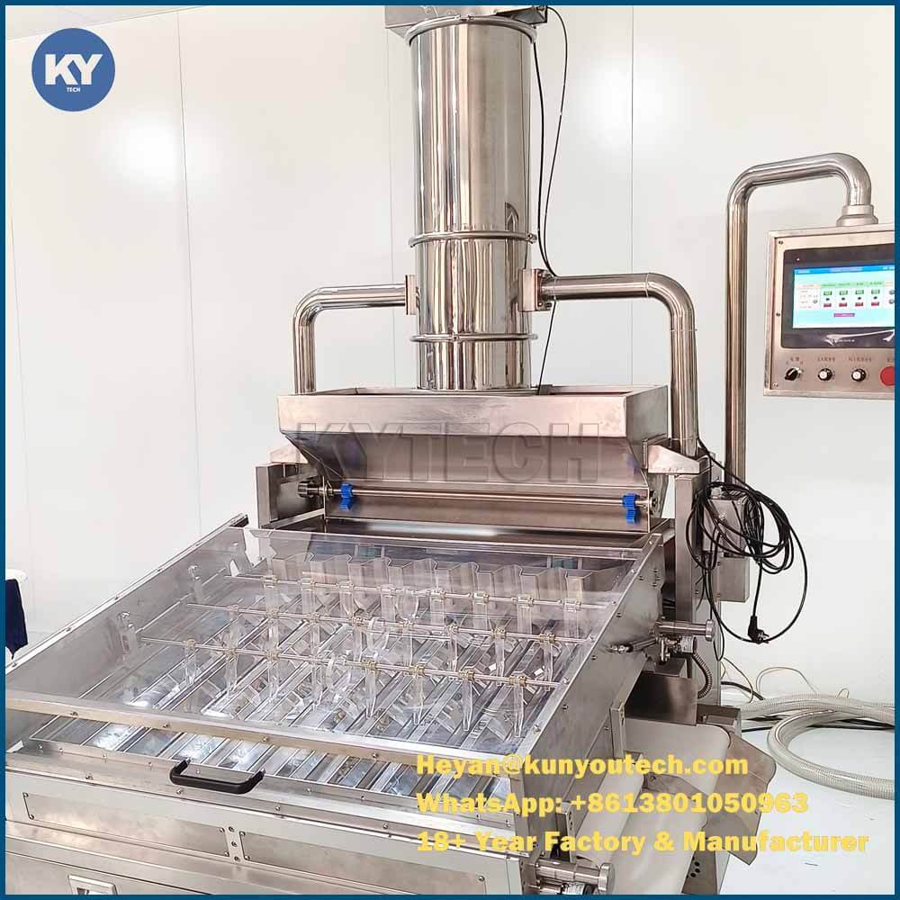 KUN YOU S610 tam otomatik yumuşak jel yapım makinesi, yeni nesil bir jelatin kapsülleme makinesidir. Makine, en son küresel kapsülleme teknolojisini ve jelatin kapsülleme deneyimimizi entegre eder. Yeni yumuşak jel kapsül üretim tesisi, lider teknolojiye, basit ama güzel bir görünüme sahiptir. Gelişmiş teknoloji ve güvenilir performans, yüksek etkili operasyon sağlar ve kullanıcının işletme maliyetini düşürür. S610 yumuşak jel kapsül makinesi yüksek bir üretim hızına sahiptir. Saatte yaklaşık 120000 adet yumuşak jel üretebilir.